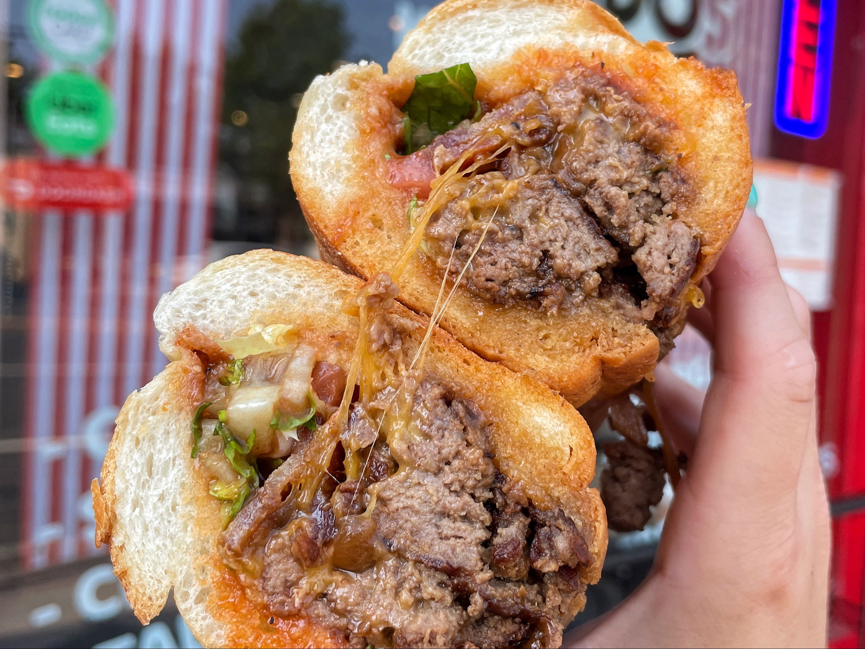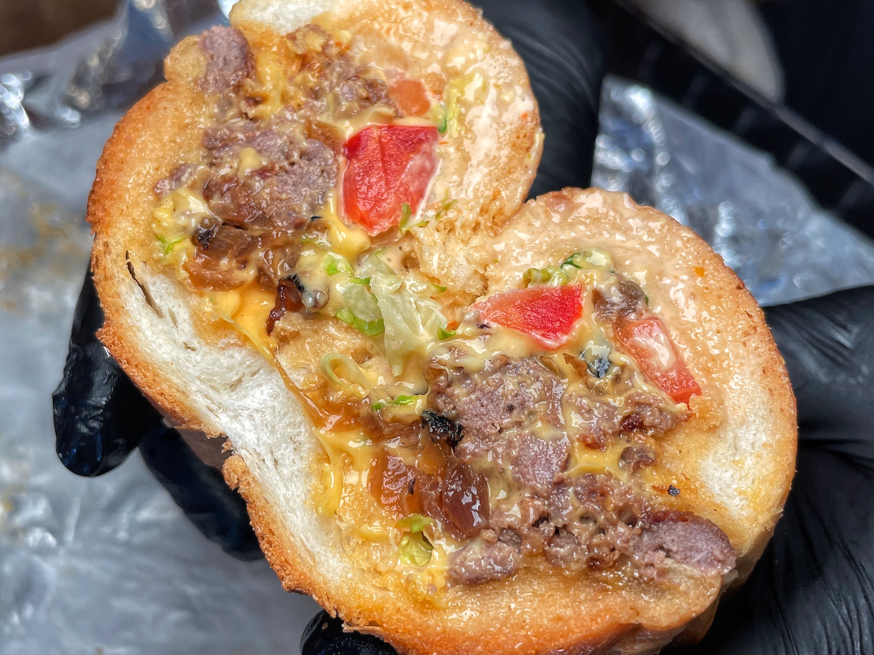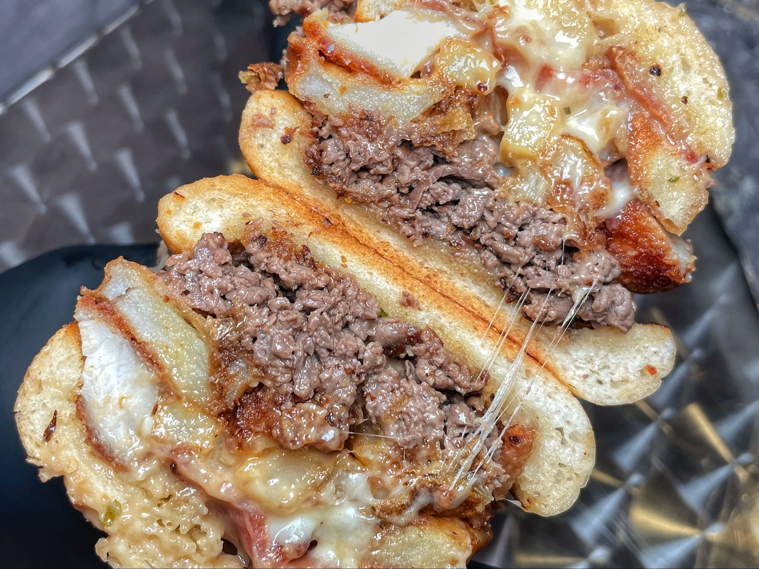 Chopped Burger, Provolone, Caramelized Onions, Roasted Peppers, Lettuce, Tomato, Garlic Aioli, Hero