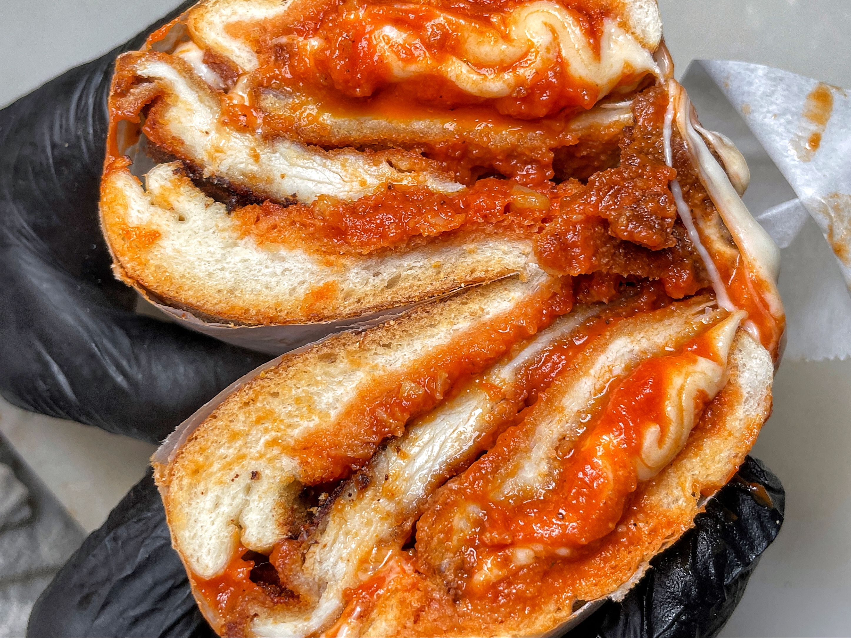 Fried Chicken, Vodka Sauce, Mozzarella, Parmesan, Toasted Garlic Bread