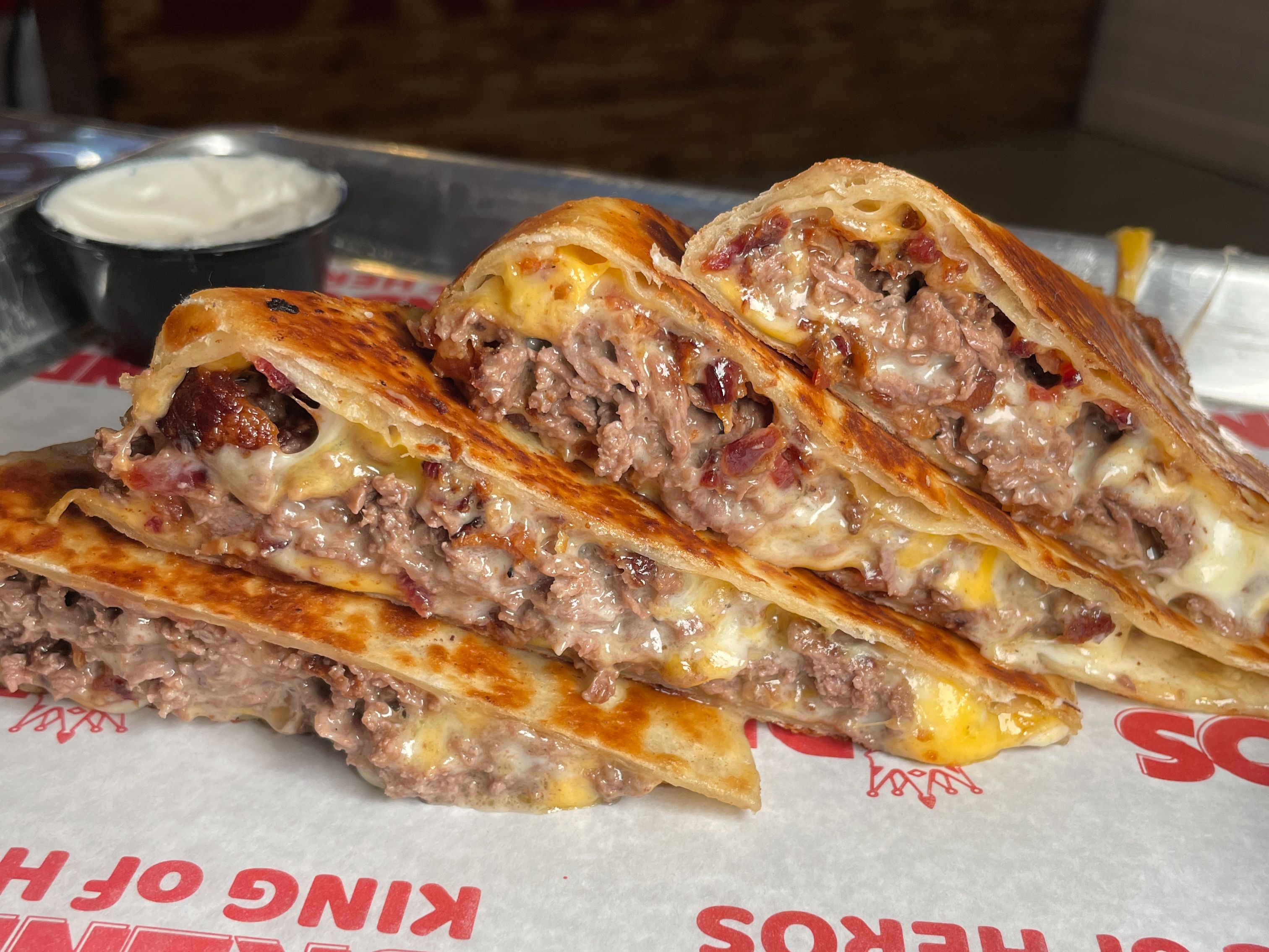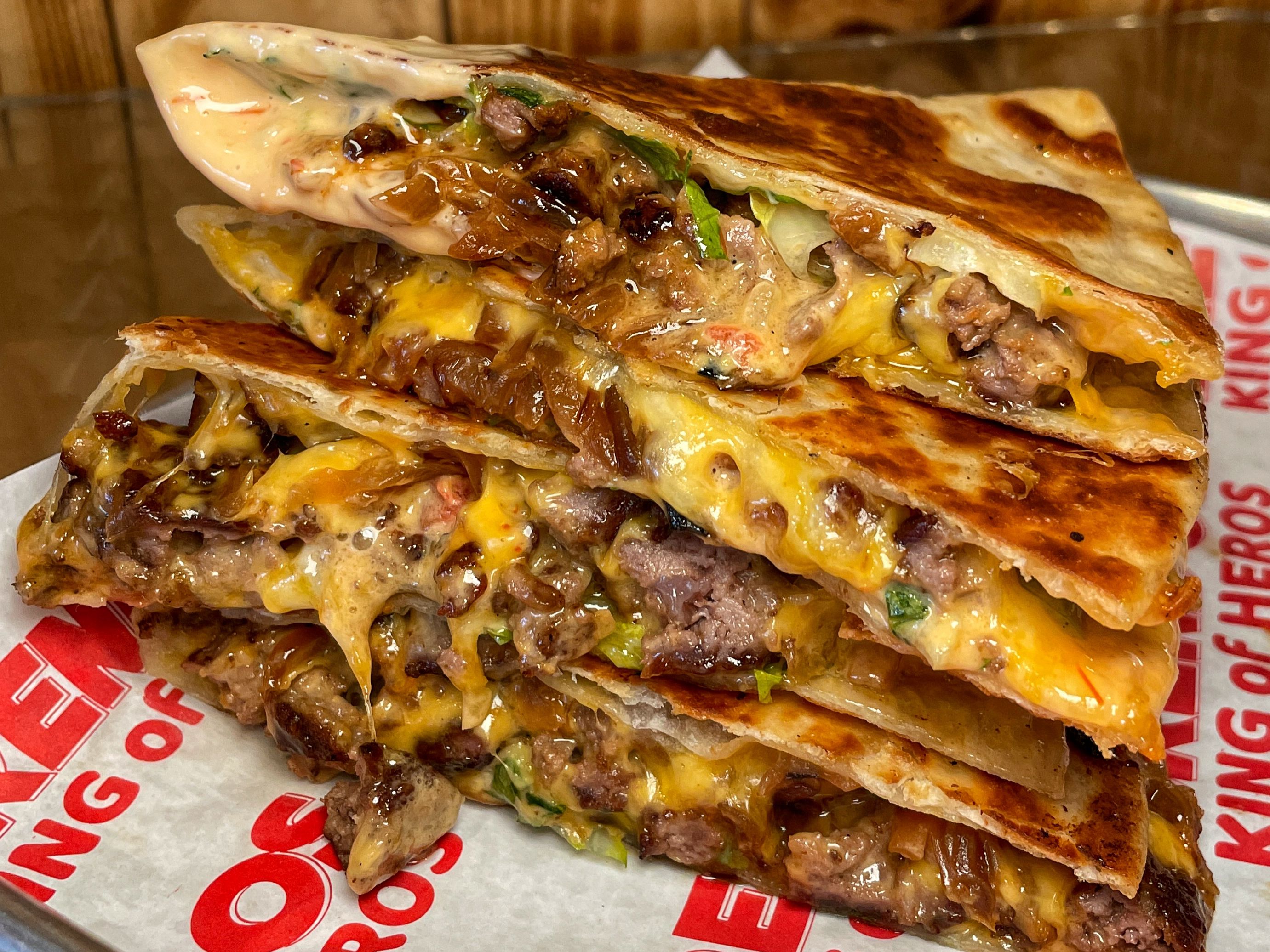 Chopped grilled chicken, pepper jack, caramelized onions, roasted peppers, buffalo and ruff ryder sauce, hero