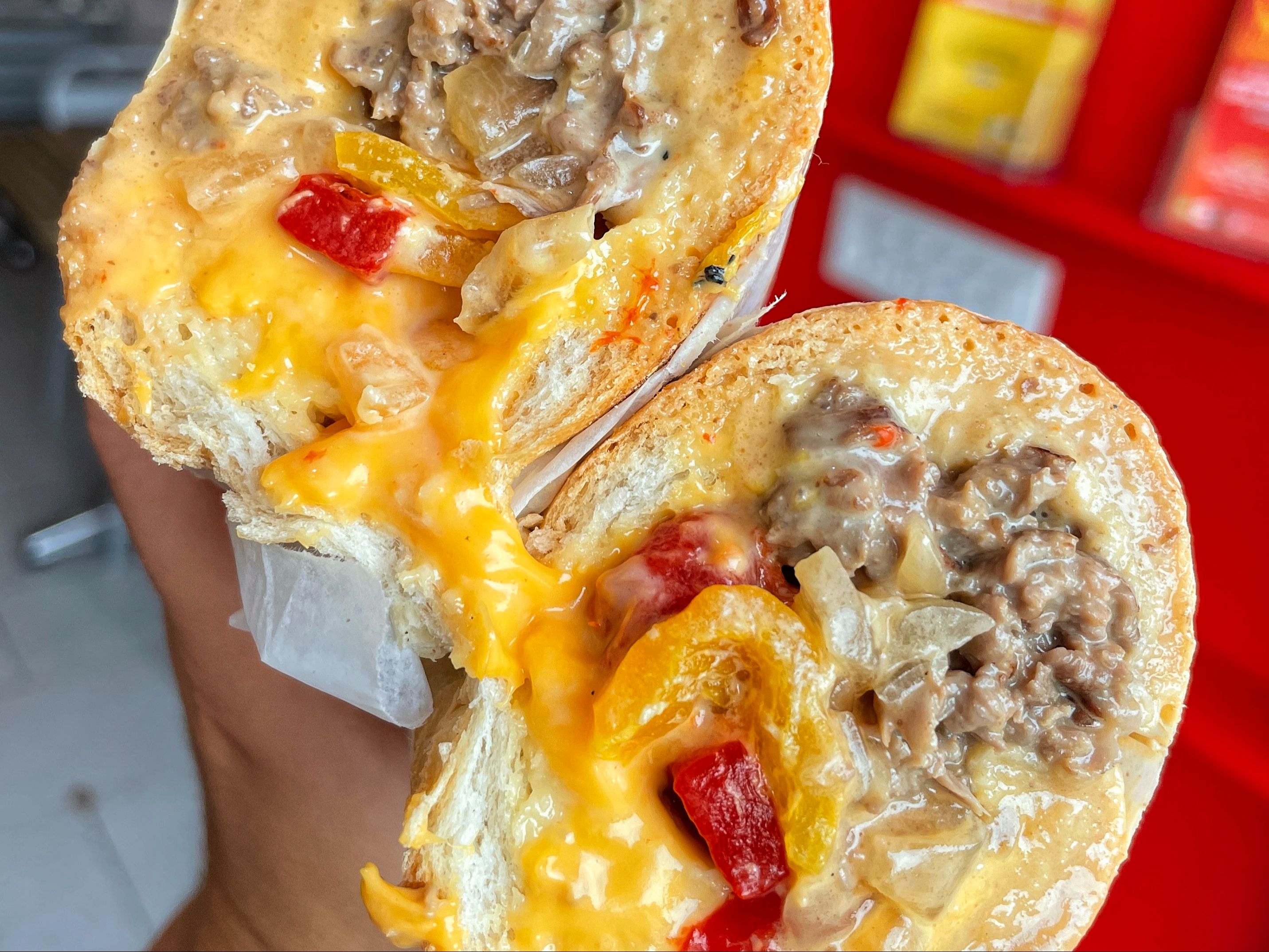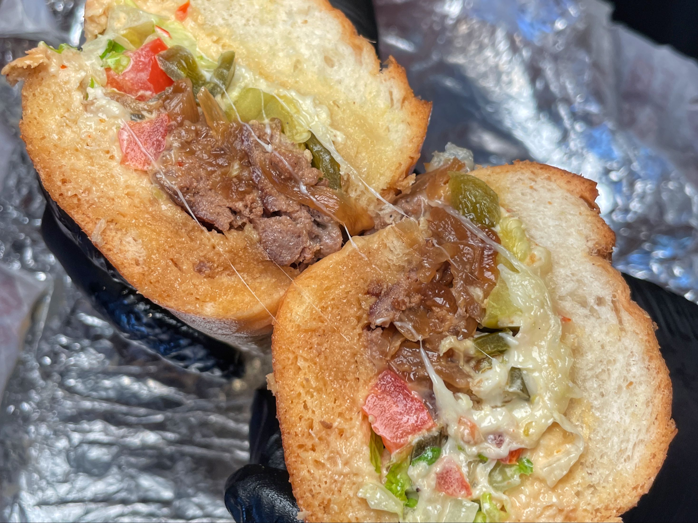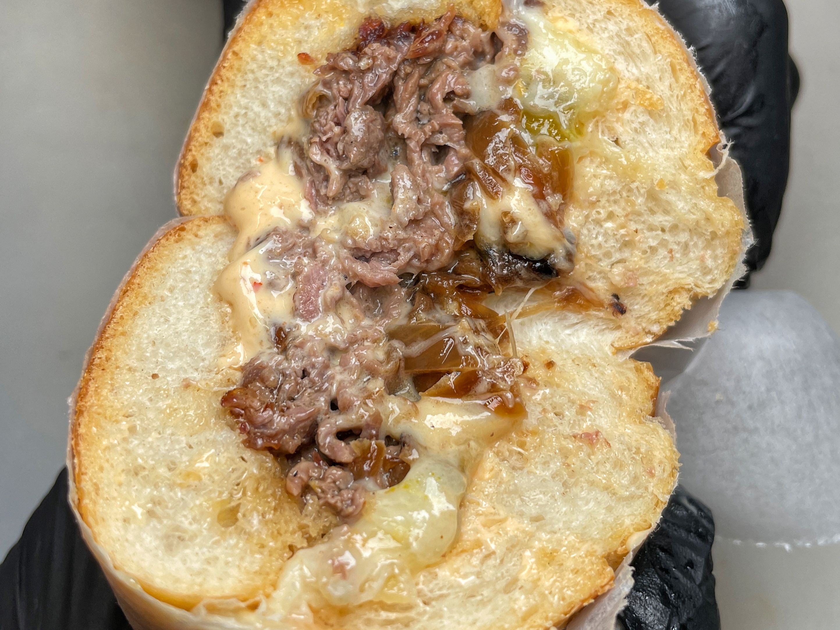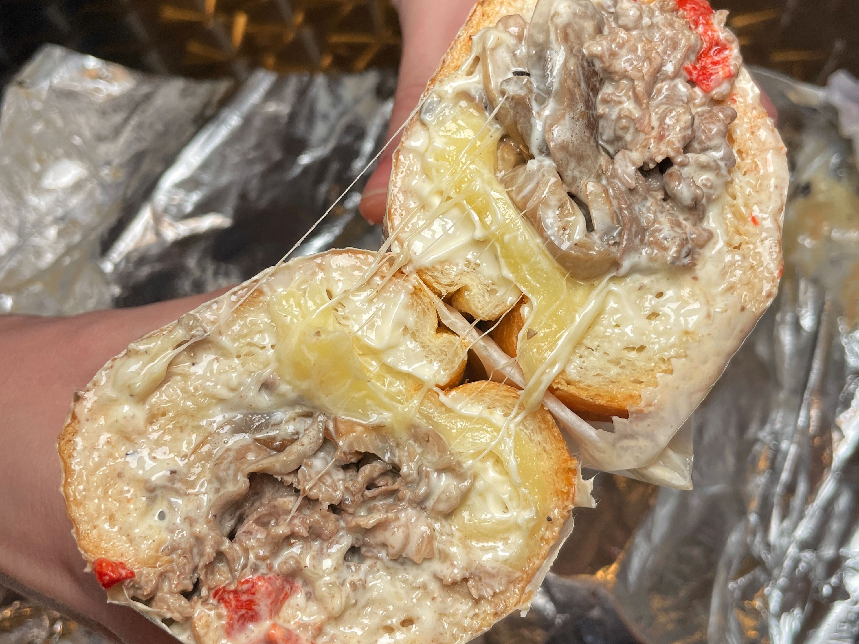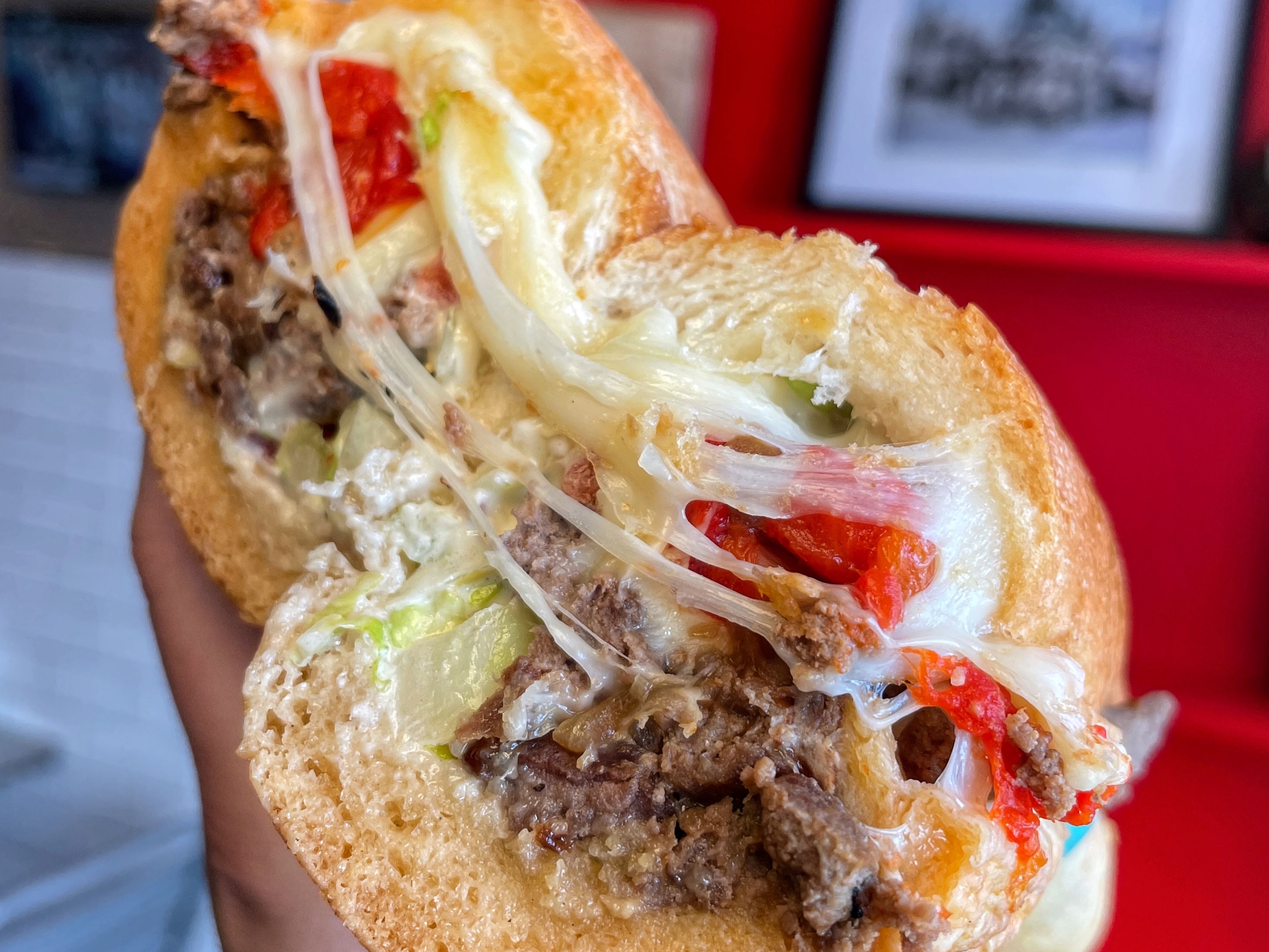 Ribeye, Cheese Wiz, Caramelized Onions, Roasted Peppers, Hero