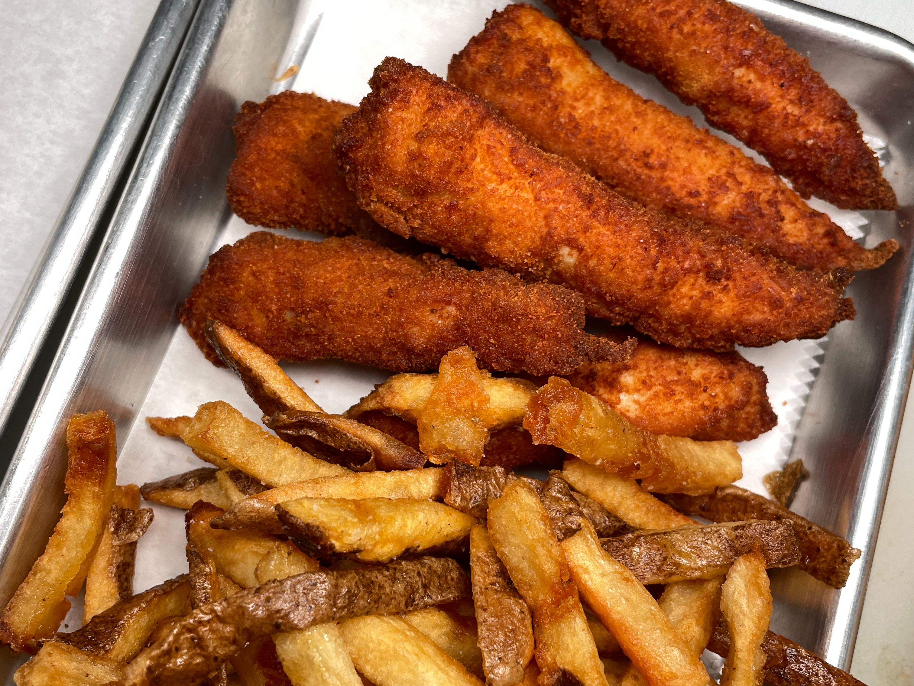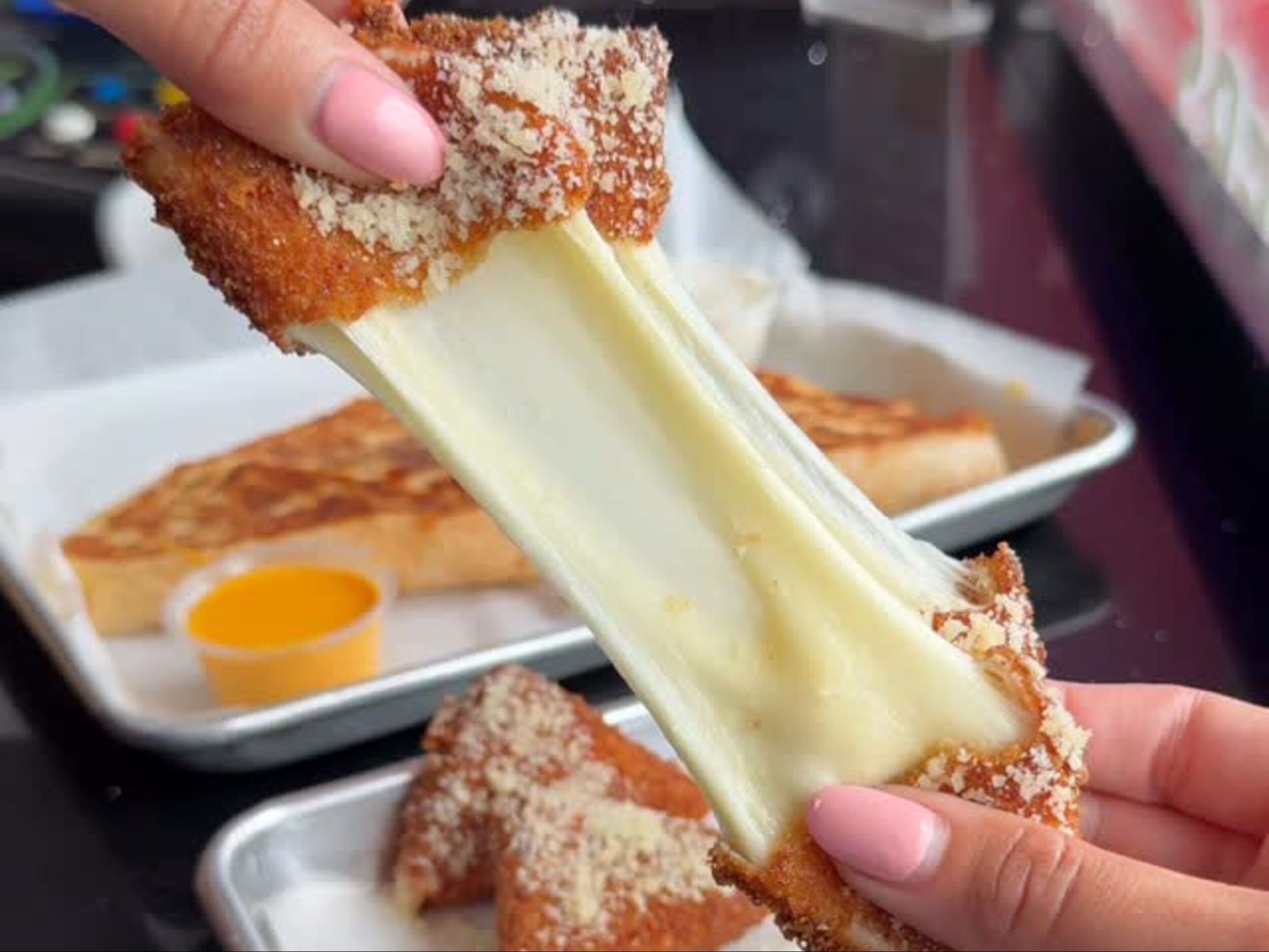 Fried Chicken, Fried Mozzarella Triangles, Bacon, Cheddar, Chipotle Aioli, Toasted Garlic Bread
