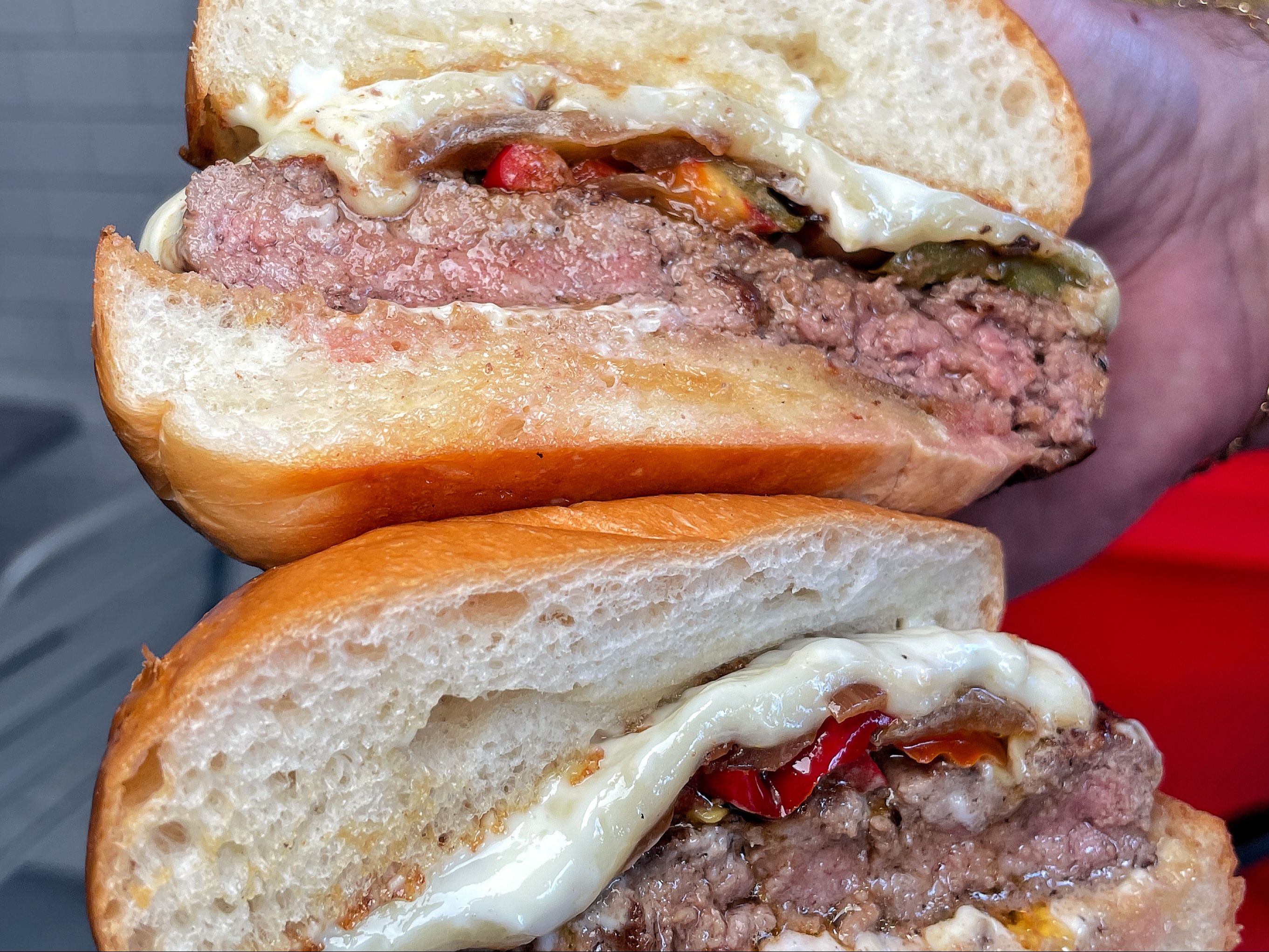 Burger, Provolone, Cherry Peppers, Caramelized Onions, Garlic Aioli, Torta Bun