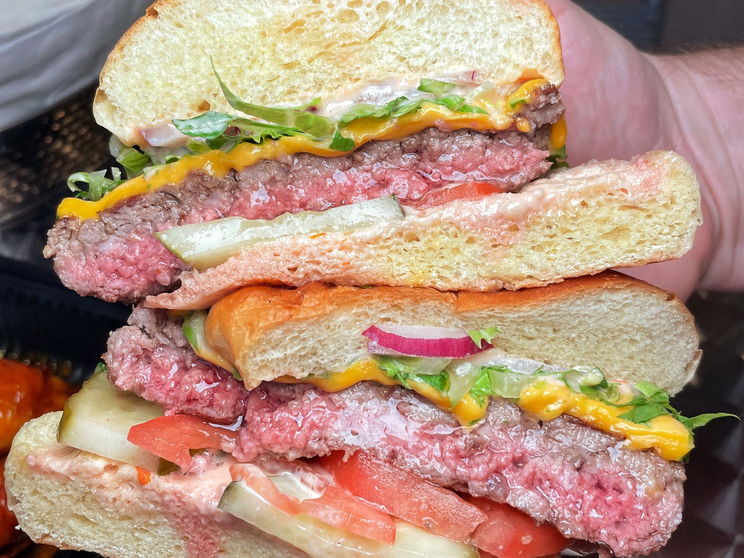 Chopped Burger, American, Caramelized Onions, Lettuce, Tomato, 1000 Islands, Hero