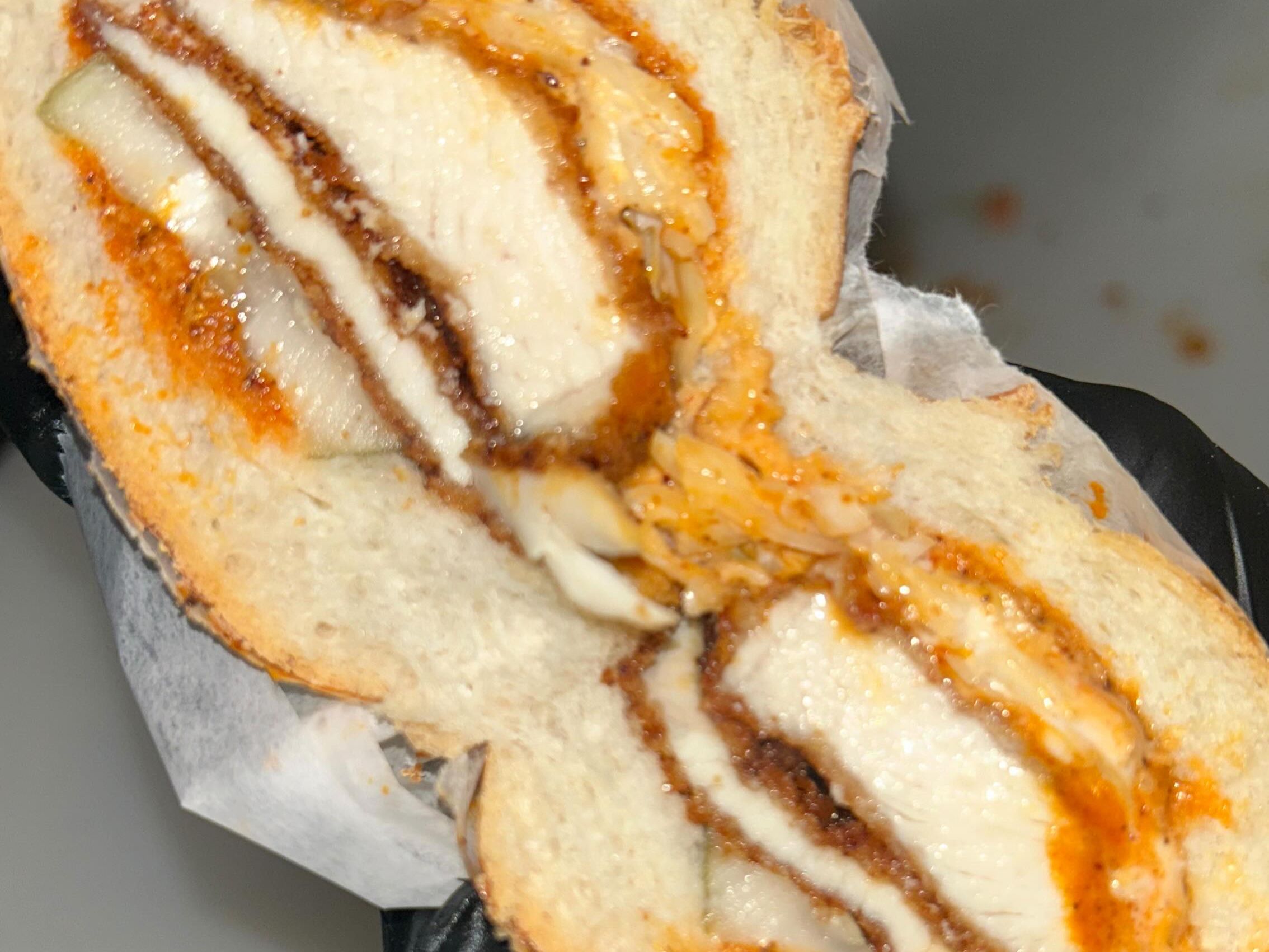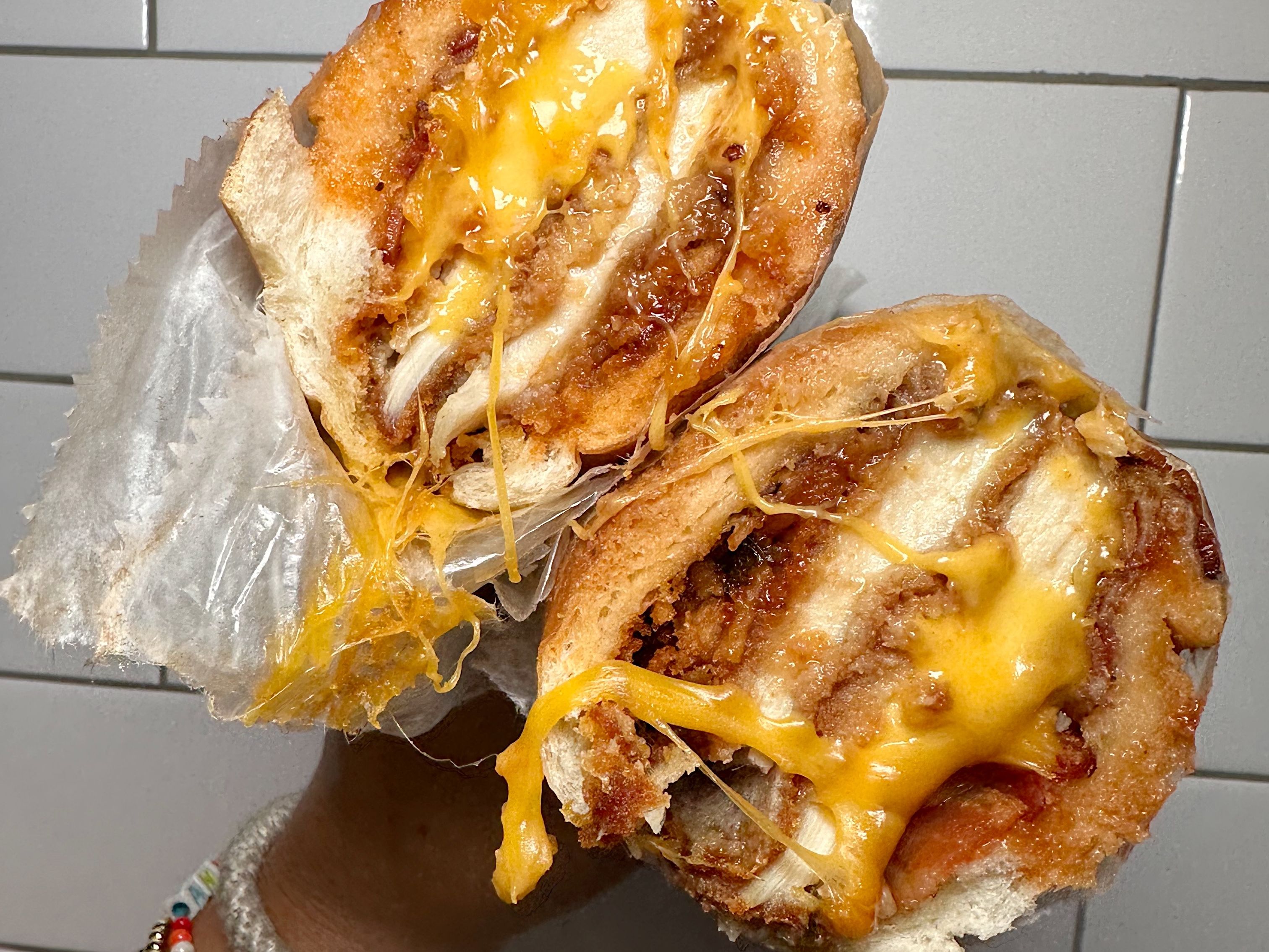 Fried Chicken, Bacon, Mac N Cheese Stuffed in Hero