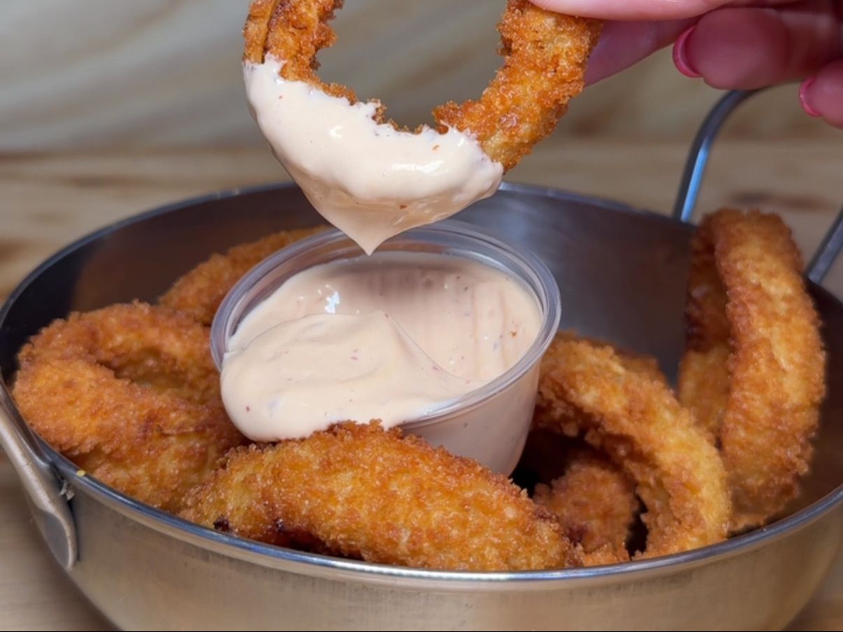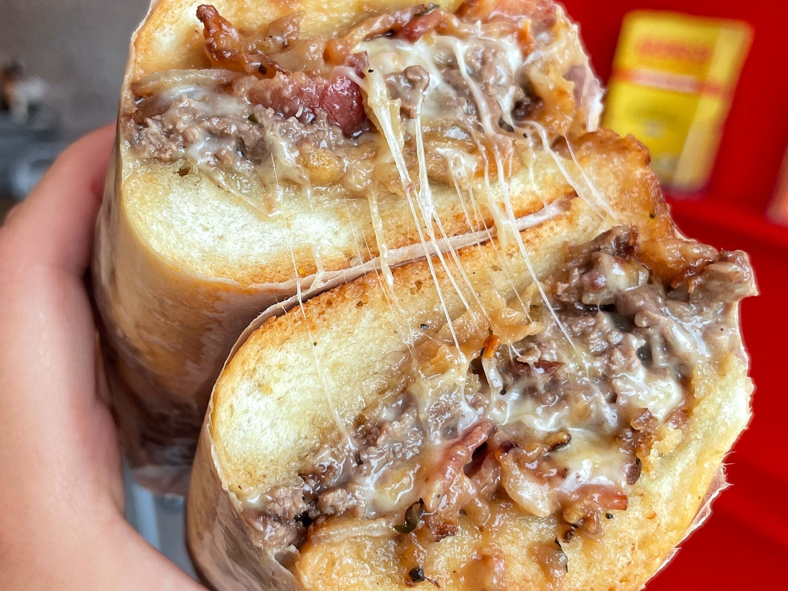 Ribeye, Bacon, Mozzarella, Crispy Onion Straws, Gravy, Toasted Garlic Bread