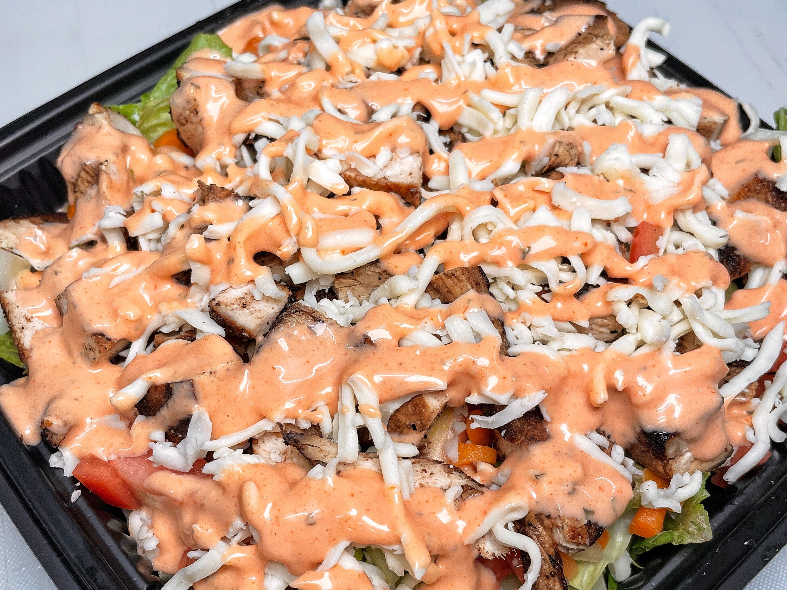 Grilled Chicken, Lettuce, Tomato, Celery, Shredded Mozzarella, Buffalo Ranch Dressing